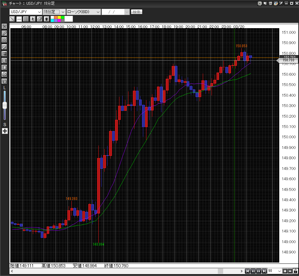 金融緩和を解除したにもかかわらず、織り込み済みということもあり、ドル円は2円近くの爆上げとなりました。