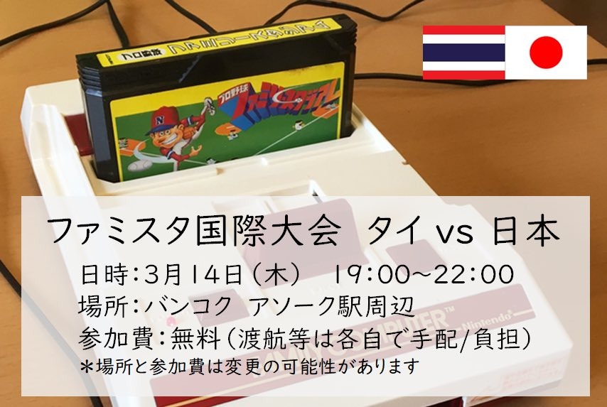 初代ファミスタ全国大会の優勝者として、タイvs日本に参加してきます。出場希望の方は2月29日までにXのDMでご連絡をお願いします。